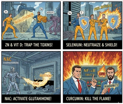 o 亜鉛 & ビタミンD: 有害金属を捕獲して無毒化するタンパク質の産生を強力に促進します。