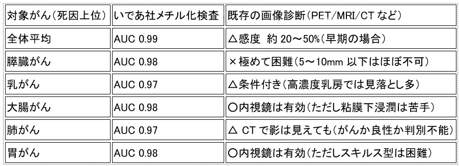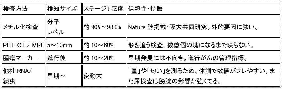 がん種別:早期発見の精度比較表