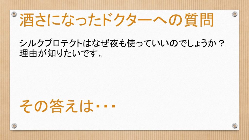新しい動画を公開しました。 【化粧品について】なぜシルクプロテクトは夜でも使っていいのか、理由が知りたいです