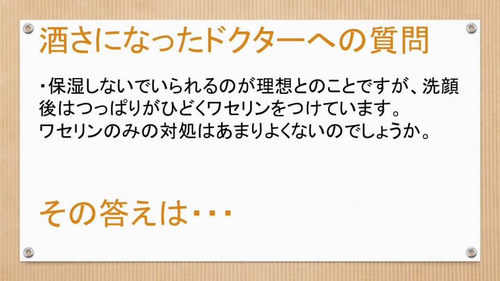 今回は【お肌について】ワセリンだけの保湿は良くないのか、というご相談にお答えしています。