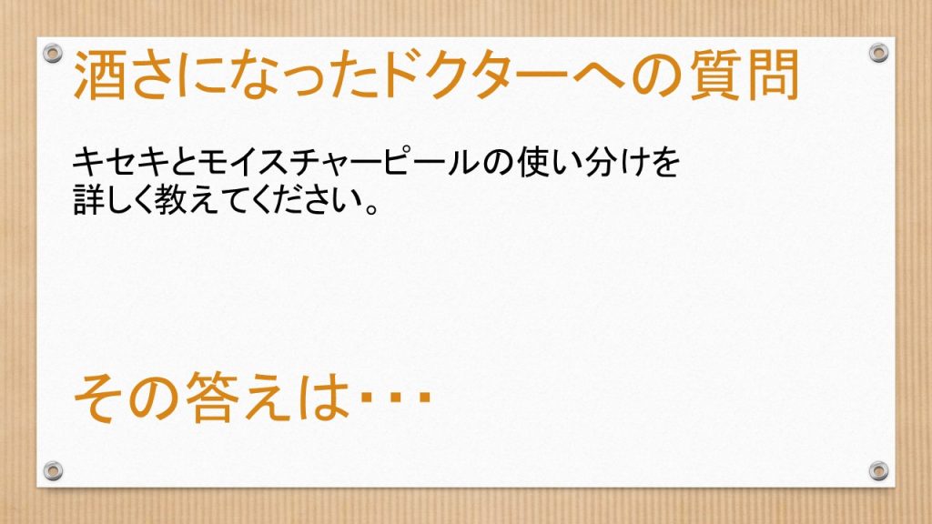 今回は「キセキとモイスチャーピールの使い分けを詳しく教えてください。」をテーマに、それぞれの特徴や成分濃度の考え方、毛穴や赤みなど肌状態に応じた選び方を解説しています。