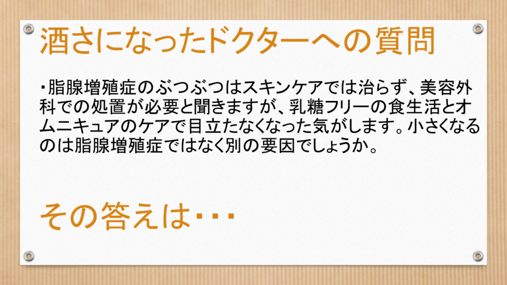 「脂腺増殖症はオムニキュア商品で落ち着きますか?」を解説しています。